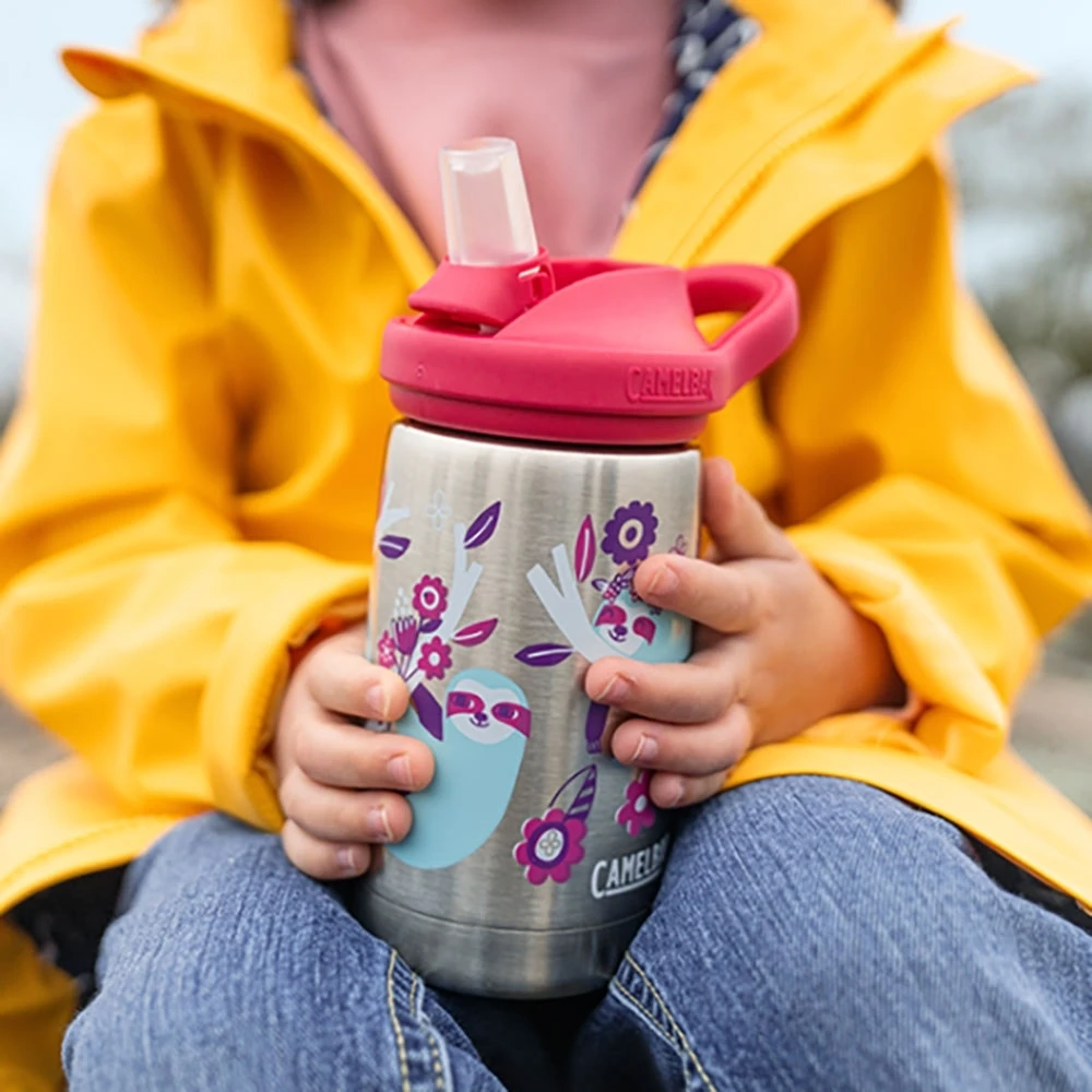 The comfortable handle allows small hands to carry easily, and drinking through the straw is simple and fun with a quick flip, bite, sip! There’s a whole lot to love about the Eddy®+ Kids Insulated Stainless Steel water bottle from CamelBak.