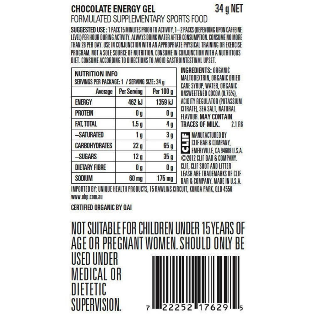 Made with organic energy enhancing ingredients, one Clif Shot Energy Gel will keep you powering on for up to an hour of intense activity.