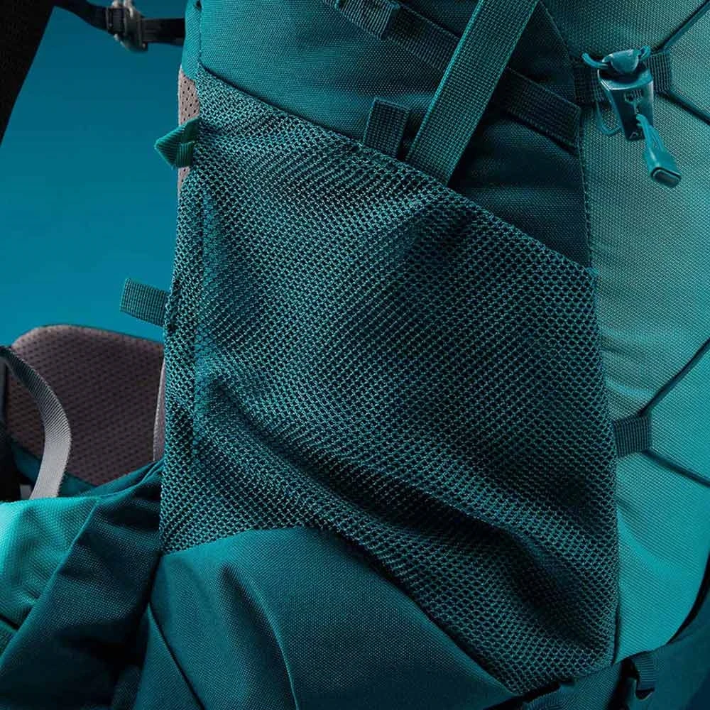 This pack is designed with the slimmer frames in mind, flexing a woman’s fit to ensure she treks protected in topmost comfort. Hipbelt pockets hold the odds and ends like compasses, gloves, and other gadgets – and lightweight strength of Lowe Alpine’s adjustable Air Contour carry system carries you across all terrain. Keep your baggage cinched and together with base and side compression straps too, while dual-access stretch side pockets hold the mid-track snacks, bits, bobs, and bottles.