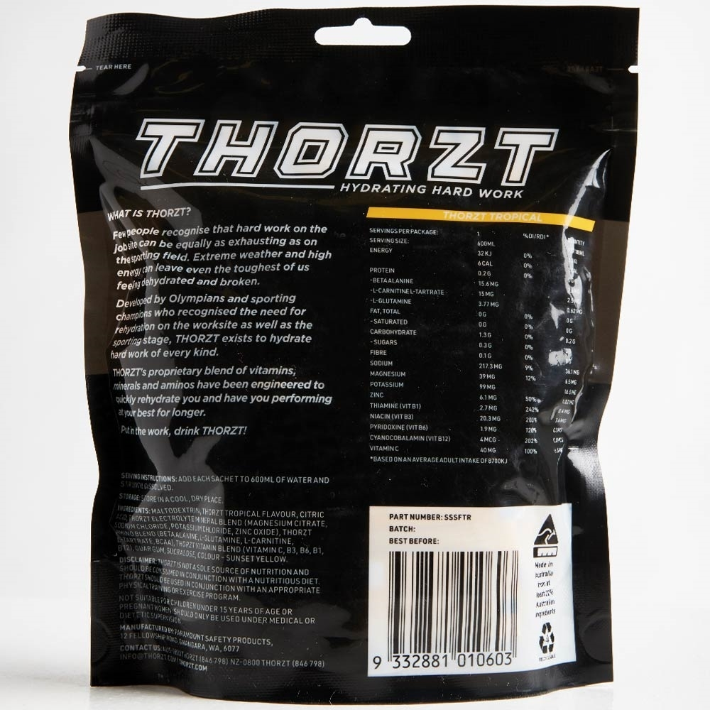 When you’ve got a long day ahead of you out in the sun, you’ve got to stay hydrated, so you can stay on task. With the Tropical Solo Shot Hydration Sachets from Thorzt, you can keep dehydration at bay, without the extra sugar.